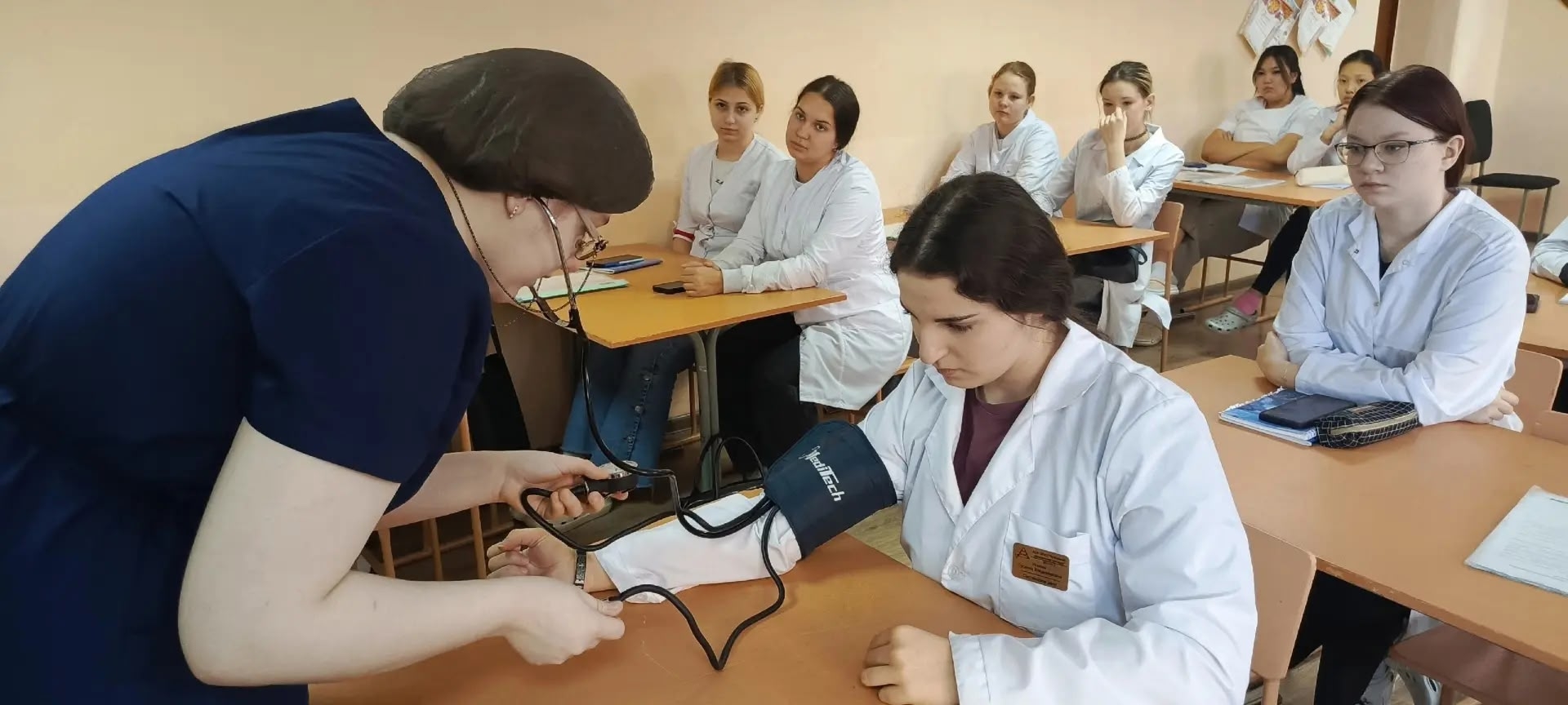 В Анжеро-Судженском филиале преподаватель М.М. Николаева провела лекцию о работе сердца для сотрудников колледжа. А студенты старших курсов организовали просветительские беседы для сверстников: не только рассказали о профилактике, но и наглядно продемонстрировали методику измерения артериального давления.